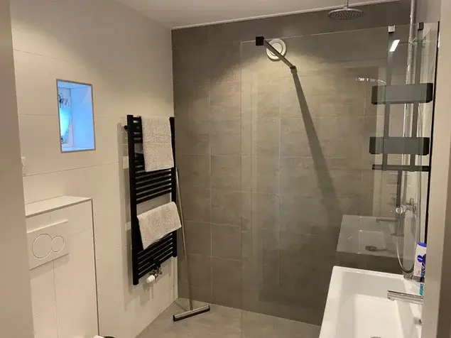 1e verdieping: Inloopdouche, toilet en 1 wastafel